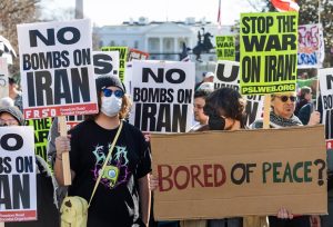 प्रमुख नारे : “ईरान पर युद्ध रोको” और “हमे एक और अंतहीन युद्ध नहीं चाहिए।”