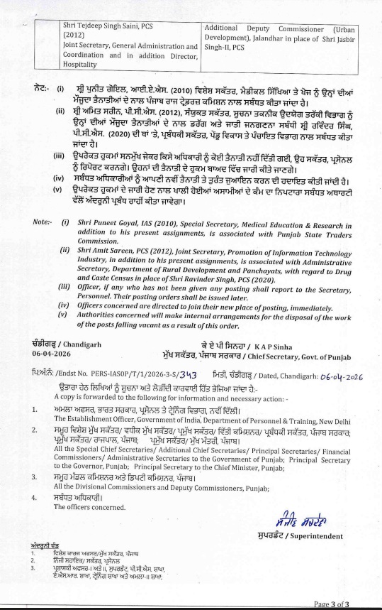 पंजाब में बड़ा प्रशासनिक फेरबदल, kapurthala के DC सहित 12 IAS व एक PCS अधिकारियों का तबादला