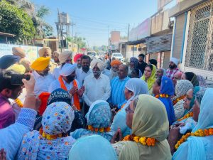विधायक कुलवंत सिंह पिंड सनेटा से मुख्यमंत्री यात्रा योजना के तहत बस को हरी झंडी देकर रवाना करने के दौरान नाल हैं हलका कोऑर्डिनेटर फूलराज सिंह और होर।